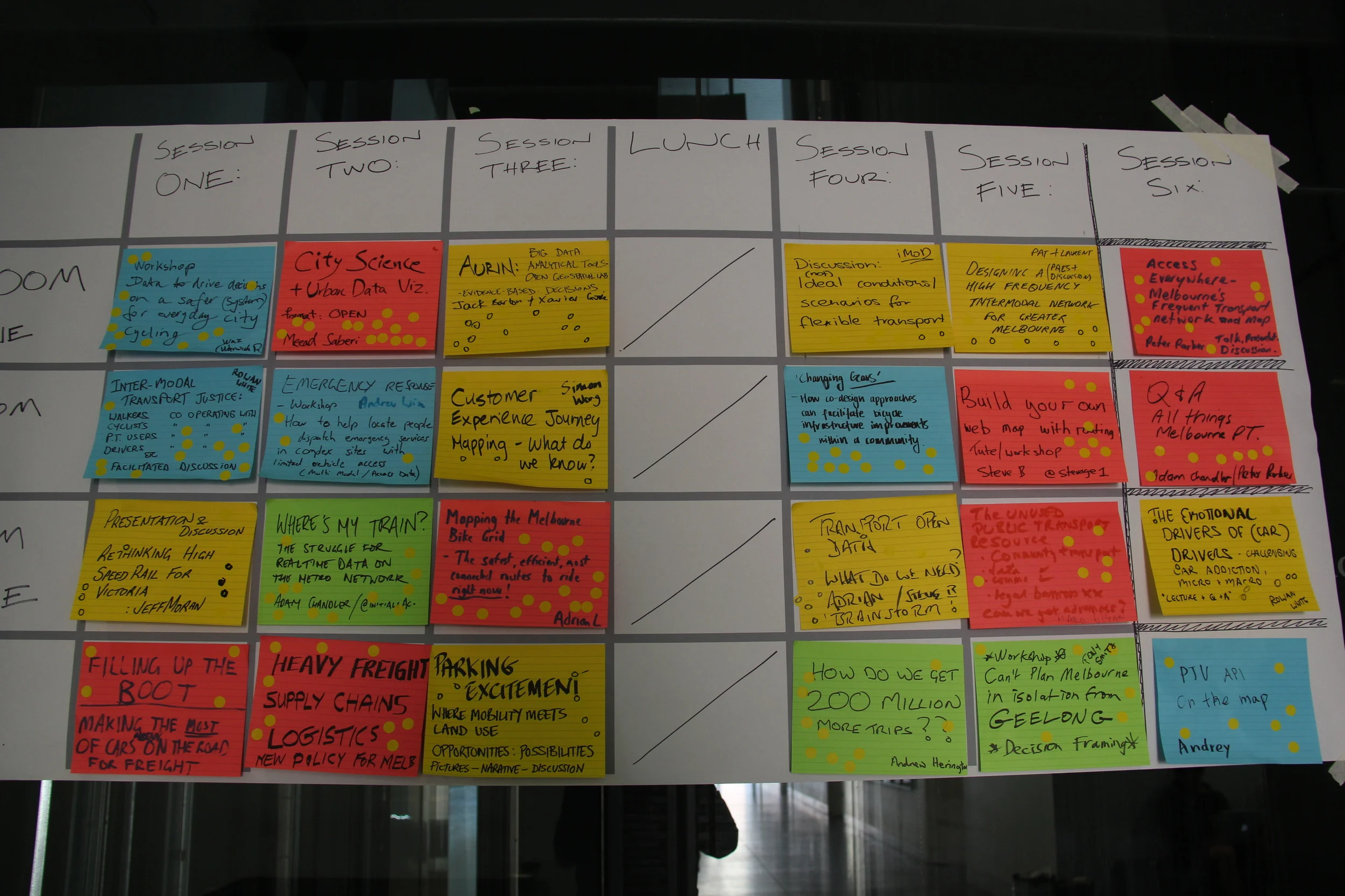 TransportCamp is an unconference which means the participants determine the agenda on the day. Check out the TransportCamp Melbourne 2014 agenda matrix that resulted!